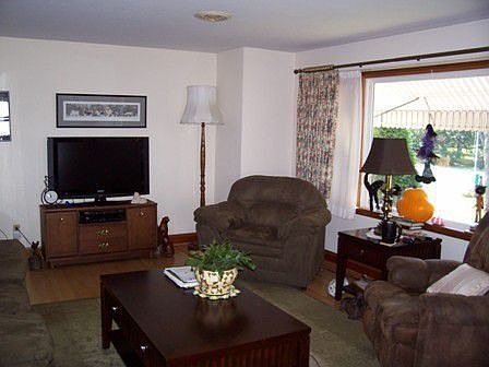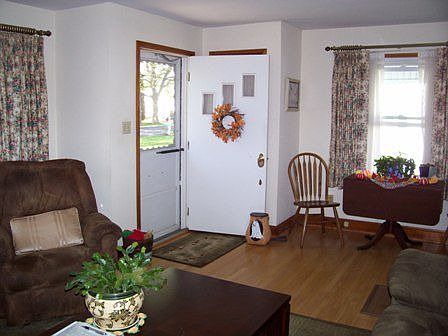 Three bedroom rancher in delightful rural setting on 1.38 acres backed by open farm land, hardwood floors throughout home. Third beroom has separate entrance and half bath. Perhaps used for home business. 14x36 detached garage/ workshop, large dog run and outside pavilion.