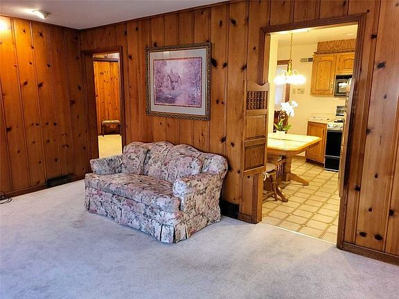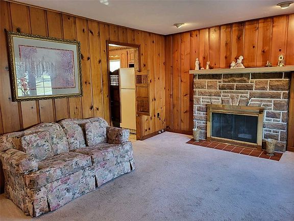 Lovingly maintained; neat, petite and oh so sweet; simplistic one floor living; inviting warmth of tongue & groove paneling in the living room with stone gas-log fireplace and bow window; fully equipped step saver kitchen with oak cabinetry and ceramic tile flooring; 2 nice bedrooms with wall-to-wall carpeting; main floor full bath with special needs mobility accessories in the newly updated tub/shower combination; entertain in the spacious lower level game room or turn it into a 3rd bedroom as there is a nice large bath with walk-in shower; laundry room has cabinetry and a folding table for convenience sake; additional entertaining space on the huge, breezy covered back deck; the big, level back yard is divided into 2 yards by the detached double car garage; additional off street parking on a 1 car concrete pull off pad and 2 additional spaces to park in front of garage, also, on street parking as well; Proudly offered with a 1 year home warranty!!!