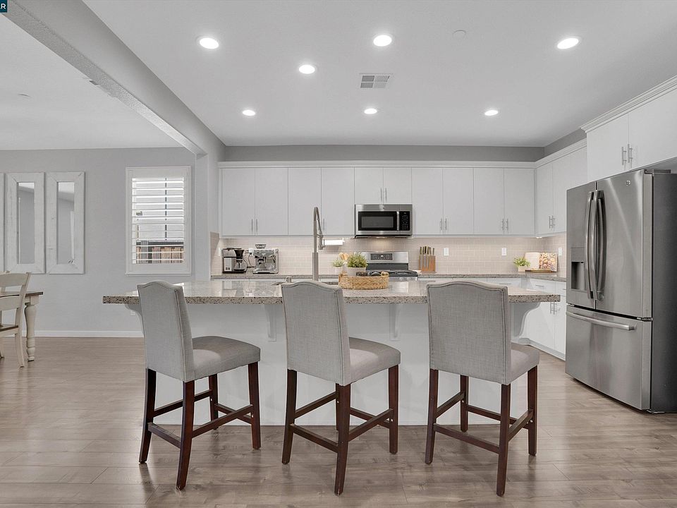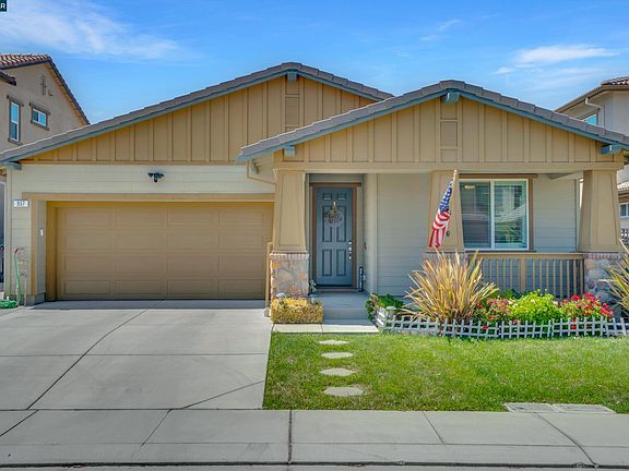 ONE OF THE LOWEST PRICED IN EMERSON RANCH! NO HOA! This well-maintained single-story home is move-in ready and has it all! Built just 8 years ago, the home offers 3 bedrooms, 2.5 bathrooms, and a spacious open floor plan designed for modern living. Enjoy plantation shutters, upgraded laminate flooring, and plenty of natural light throughout home. The kitchen features an oversized island with bar seating, stainless steel appliances, a gas stove, and abundant cabinet space - perfect for cooking and gathering. The primary suite is a true retreat with dual walk-in closets, a custom barn door, and a spa-like bathroom with dual vanities and a soaking tub. Step outside to enjoy outdoor living in the low-maintenance backyard, or take a stroll to Emerson Ranch Park, the baseball diamond, and picnic areas just minutes away. Added benefits include owned solar for energy efficiency and cost savings, plus no HOA! This home perfectly blends comfort, style, and convenience in one of Oakley’s most desirable neighborhoods. Beyond the community, Oakley continues to grow with exciting developments like the upcoming Shops at Laurel Fields and the future 55-acre Oakley Regional Park, bringing even more recreation and convenience right to your doorstep.