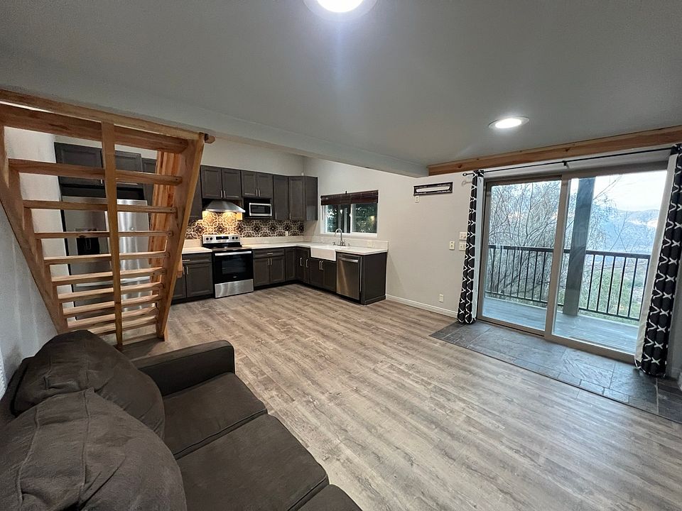 Beautifully remodeled studio with storage loft and gorgeous El Capitan mountain/lake views. Kitchen has lots of cabinets, a large fridge, microwave, and a dishwasher. Plenty of sunlight and a walk in closet. Tall ceilings and extra storage. Secluded neighborhood and driveway with plenty of privacy and deers. Five minutes from Baron's Grocery Store, CVS, and a variety of shopping outlets and eateries including Mediterraneo, Janet's, and others. Lots of hiking and mountain biking available across the street. Unit has central heating and air and off street parking is right nearby. Shared laundry room with one other person. +$100/mon covers electricity, gas, trash, landscaping, and water. One year lease. No smoking. Tenant pays for their own internet + $100 for trash, water, electricity, gas, landscaping.