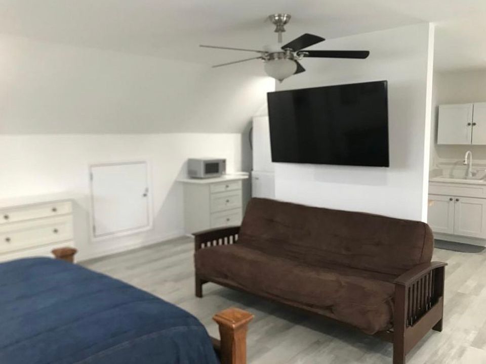 The suit is on a 3er floor of my house with an independent entrance, located in a very exclusive, quiet and safe neighborhood. This suit has everything full bath, washer and dryer, microwave, refrigerator, cook top, small dining table, drawers, queen bed, night table, couch, closet and a 65" TV