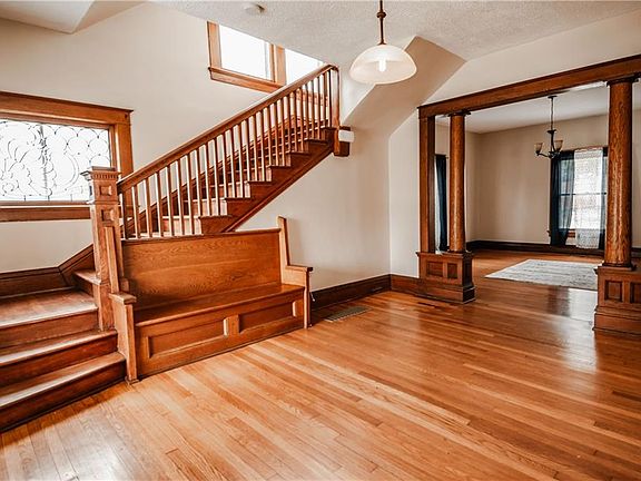 Upon entering, you'll be greeted by a welcoming foyer that showcases the home’s stunning original woodwork that adds a touch of timeless elegance. The hardwood floors flow throughout, enhance the character and warmth of each room while plush carpet makes the living room extra cozy. The updated kitchen is a chef’s delight, blending modern functionality with classic charm. With stylish cabinetry, sleek countertops, and updated appliances, this space is perfect for preparing meals while maintaining the home's historic appeal. Upstairs, the bedrooms offer plenty of natural light and cozy charm, while the full bath maintains period details with tasteful updates. A convenient half bath on the main level adds extra functionality.