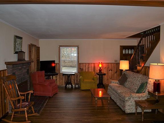 Warm and welcoming Cape on almost 3 acres of property, offers Wood Floors, Brick Fireplace, Wood Burning Stove, cedar closet, and Bedroom on main level. This home has a Glass Enclosed Porch in the front and one on the back, along with a deck to view the large level yard and gardens. There is plenty of storage and a workbench in the basement for your hobbies. One of the bedrooms upstairs has a space, off the closet, that can be finished and would be great for an office or walk in closet. All of this sits on level property with fenced in garden and lots of privacy. There have been a lot of updates such as new well pump, replacement windows, updated bath and roof. This house says WELCOME HOME.