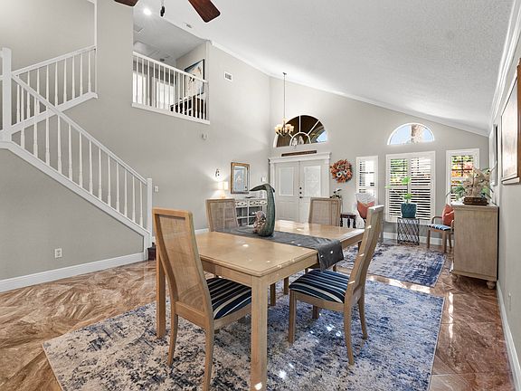 Welcome to Willoughby Glen, a desirable gated community where this pool home combines comfort with lifestyle. Inside, you'll find light-filled living areas with vaulted ceilings and a specious kitchen featuring granite countertops, stainless steel appliances, an oversized sink, and plenty of room to entertain.The primary suite is located on the first floor with dual closets, other home highlights whole-house natural gas generator & tankless water heater. Step outside to enjoy your private pool and the long view of the community's waterfront, showcasing a beautiful southern exposure. Professional landscape lighting enhances the curb appeal each evening, making this home an ideal blend of elegance and Florida living.