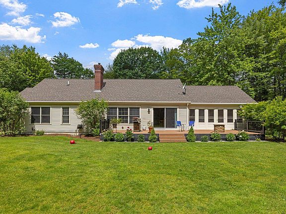 Tucked up a private driveway sits this great contemporary ranch with an open airy floor plan. There is a room for everyone's needs and also includes a long list of recent upgrades including new hardwood floors, central air, Trex decking, freshly painted interior, a newly paved driveway and much more. The great room has high ceilings, a stone and brick fireplace and a wall of windows lets the sun pour in. The spacious kitchen has granite counters, stainless appliances and opens to a main level family room. The primary bedroom has a private tiled bath and walk in closet. A large screened porch overlooks a beautifully landscaped yard. The lower level has a large games/exercise room, a newer ¾ bath, a home office and tons of storage. Additionally, there is a 35x30 outbuilding with endless opportunities for a home business, contractors, etc. Sitting on a level 14+ acre lot in tax reduced current use with gardens and fruit trees and berry bushes this is a perfect country retreat. Located only a few miles from a sandy town beach on Lake Winnisquam and 1-93 this is truly the best of all worlds. Delayed showings by appointment only Sat 6/24 2pm-4pm. Open House Sunday 6/25 12:00am-2:30pm.