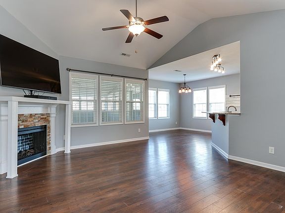 Great ranch style plan with bonus upstairs that could be used as 4th bedroom. Open concept living with laminate hardwood flooring, vaulted ceilings, stone accented fireplace and plenty of natural light. Kitchen features tons of granite counter space & storage, tile backsplash, butler's pantry and stainless steel appliances. Master en-suite with dual vanities, soaking tub, separate shower and walk-in closet. Garage has been converted to climate controlled living space with a separate workshop within. Could be used as a recreation or bonus room or any type of flex space. Could be converted back if buyer wants a garage. Large screened porch and patio opens to a backyard oasis! Flat, fenced-in rear lot with fire pit area, pool, pool deck and pool house or entertaining area. House has been freshly painted. No HOA.