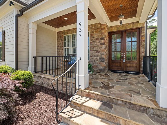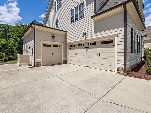 Luxury Living. Prime Location. Top-Tier Schools. Discover a stunning custom home in one of the area's most sought-after school districts. This 5-bedroom home features a main-level guest suite with private bath and walk-in closet, as well as a separate powder room and a mud room with an organized drop zone. There is a spacious open floor plan, hardwood floors, and exquisite millwork throughout. The chef's kitchen has a show-stopping island, gas range, butler's pantry, wine fridge, granite countertops, stainless steel appliances, and sunny breakfast nook. Enjoy seamless flow to the family room, a cozy fireplace flanked with custom built-ins, overlooking the screened porch and level backyard. All bedrooms include en suite bathrooms. Additional highlights include a finished 3rd floor recreation room with closet and half bath -perfect for a media room, home gym, or a 6th bedroom. Special features include 3 side-entry garages, EV charger for electric vehicle, extra 220 plug in garage, tankless water heater, sealed crawlspace, energy-efficient certifications, custom valences and window treatments, beautiful millwork throughout, tray ceilings, coffered ceilings, extensive tech wiring (outside cameras, Cat6 high speed network, built-in speakers in living, wired for speakers in bonus rec room, home security system) Located just minutes from I-540, RTP, and RDU Airport, in a quiet community.