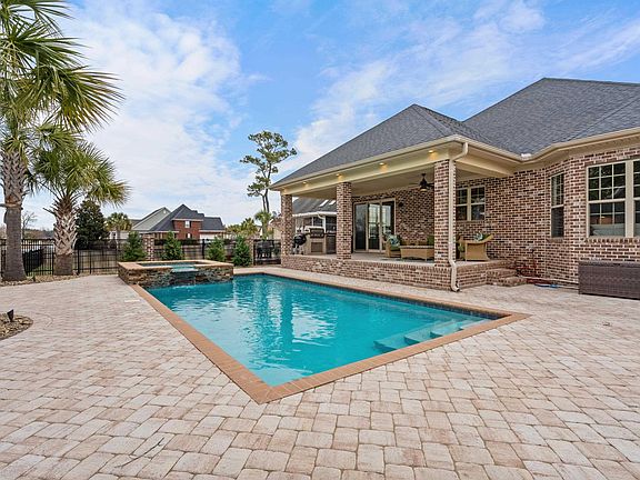 Back on the Market ! With no fault to seller, This home has been through inspections and all necessary repairs have been done. This home can be closed quick. Check out this 3 bedroom, 2 and a half bath all brick custom home built in 2018! This home boasts a split bedroom floor plan, open kitchen, living, and dining room with over 3,300 sqft under roof! The home features a superior primary suite as well as two spacious guest suites with a Jack and Jill bathroom. Walking thru the home you enter the open concept kitchen/living/dining-room combo with a view of your own oasis situated on a water featured lot!! The spacious living room and sitting area come with a fully custom gas fireplace. The kitchen is equipped with plenty of cabinet space, quartz countertops, and stainless steel appliances. This home has a glorified primary suite including; nice bay windows for natural sunlight, a sitting area, his and her walk in closets, and even a utility room to have your own laundry shoot! The oversized master bathroom has tons of cabinet space, linen storage, and a towel heater!! Under your 30 x 12 covered porch there is also a full BBQ and sink set up overlooking your outdoor oasis. In the outdoor oasis you will find a beautiful landscape with lighting, fully fenced in paved backyard with a 15x30 heated pool and spa. The pool does have a smart package for total control of all functions such as heating the pool and spa, spa blower, lights and pool pump all from your phone or tablet!! In addition, the garage is fully insulated with AC. Waste no time building and come and enjoy the Carolina weather overlooking a rare available water feature lot here in Carolina Waterway Plantation!! Carolina Waterway Plantation is a private gated community located on the ICW. This community comes with a private boat/rv parking, fenced in storage area, private boat launch, tennis courts, pickleball courts, basketball, playground, outdoor pool, sidewalks, walking trials and more!! This neighborhood is conveniently located next to shopping, the Tanger Outlets, grocery stores, more walking, hiking, bike trails (the hulk), dog parks, and a quick commute to Myrtle Beach for even more dining, restaurants, and entertainment. What more could you be looking for? With some fresh paint and all new carpets hurry and schedule an appointment today while it lasts!