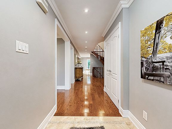 Crown mouldingPremium hardwood flooringPot lightsCustom kitchenStainless steel appliancesGranite countertopsLarge centre island
