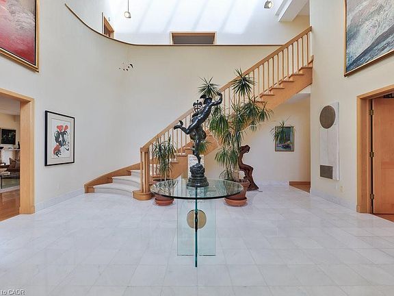 Bauhaus Masterpiece in Lorne Park Estates. This architectural gem, designed by Joseph A. Medwecki, sits on a private ravine lot with stunning lake views and nearly 12,000sqft of living space. Offering unparalleled privacy and natural light, this 7-bedroom home spans three levels, ideal for multi-generational living or staff accommodation. Features include 10-ft ceilings, maple hardwood floors, pot lights, and multiple marble-surrounded fireplaces, blending sophistication and comfort throughout. The main floor is designed for entertaining, offering a library, a grand formal living room that flows seamlessly through double doors to the expansive formal dining room- an elegant setting for hosting guests. The chef-inspired kitchen boasts high-end appliances& blue quartz countertops. For added convenience, a main floor bdrm w an ensuite creates an ideal space for a nanny or guests. The upper level reveals a luxurious primary retreat complete w a spa-like 5pc ensuite and a private balcony offering mesmerizing lake views. A 1,529-square-foot rooftop terrace your personal oasis with panoramic views of the lake, an idyllic place to relax and unwind. The lower level is a haven of relaxation and entertainment, ft five walk-outs to the rear gardens, flooding the space with natural light. It includes a private spa room with a hot tub and sauna, a secondary primary suite with a 4-piece ensuite, a gym, games room, and a 1,200-bottle wine cellar. A 3-bay garage accommodates 5 cars, with space for 10 more in the driveway and additional parking near the street. This home is not just a residence it's a statement, a one-of-a-kind masterpiece that beckons those with the most refined tastes. Experience the extraordinary and make it yours today!