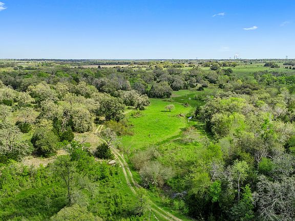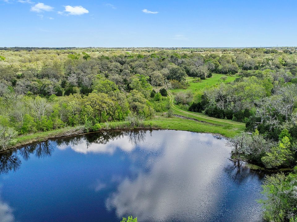 Located off the beaten path on one of the quiet back roads of Round Top, Texas is one of the most beautiful tracts of land that is an absolute sanctuary. You barely hear the sound of civilization and it lies only 10 minutes from the center of town. A thick grove of massive, shady live oak trees create a secluded haven for wildlife and the potential property owners that will appreciate and respect the land. Wind through the entire property down groomed roads and paths through shady groves of hardwoods that dramatically open into lush green cleared pastures. Cattle graze throughout the property that is cross-fenced to maintain the ag exemption. Rocky Creek winds through the upper part of the land just below the larger of the two ponds on the property.