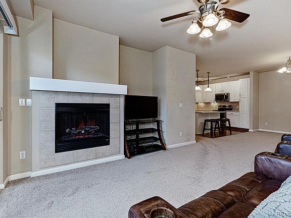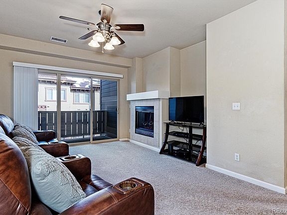 Eat off the floor clean...This one will WOW even the pickiest buyers. Priced to sell, this amazing 2 bedroom condo features 1,296 square feet, an oversized one car attached garage with built in shelving, new carpet, an incredible updated kitchen with stainless steel appliances, striking backsplash, white cabinets, upgraded lighting and a huge kitchen island. A welcoming electric fireplace will heat you up on those cold winter nights. The bedrooms are oversized and the master suite features a large bathroom with 2 sinks, 2 shower heads and walk-in closets in the master bathroom. Situated on the 2nd floor, this condo is safe and secure and features a cozy covered patio. The location in Stonegate is second to none and the community has award winning schools, 3 community pools, firepit right out of your front door, miles of trails nearby and is minutes from DIA, DTC and shopping nearby.