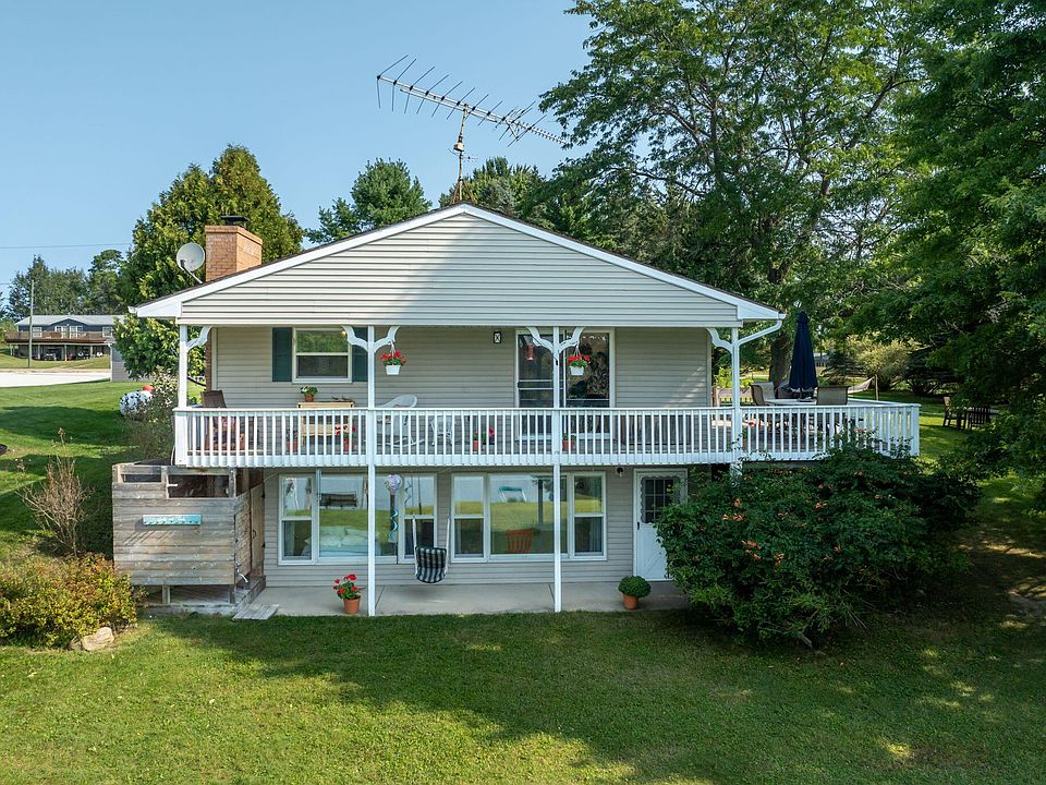 The double lot offers a generous 120 feet of stunning lake frontage with plenty of outdoor lawn space. The interior features an open-concept with two dishwashers which makes clean up easy after entertaining a small crowd. On cooler nights, everyone could gather around the cozy wood burning fireplace in the family room.
