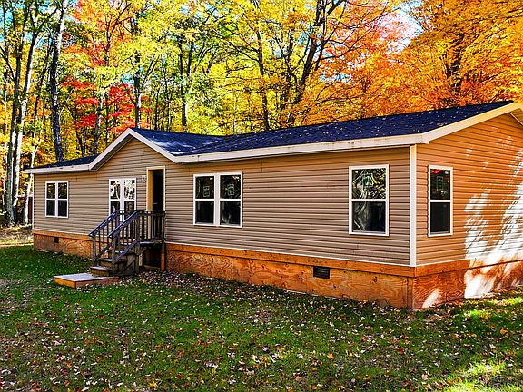 Looking for your next ''up North'' getaway? Well look no further than this nicely wooded 30 acre parcel with a modular home, 24x48 garage, and additional, 20x22 walk-in outbuilding. The home features 3 bedroom, 2 full bath, a new roof in 2024, new siding in 2024, new windows 2024, new well in 2022, and updated septic in 2022. The interior is a work in progress and needs complete remodel. The walk-in outbuilding needs concrete poured but would make a great bunkhouse. The 30 acres is a mixture of hardwoods. It is situated only a few miles outside of Irons. Ride directly to the ORV trails from the property. The little Manistee River is about 2 miles away. It's about a 30 minute drive to Ludington and Manistee, 60 minutes from Traverse City, and 1 1/2 hours to Grand Rapid
