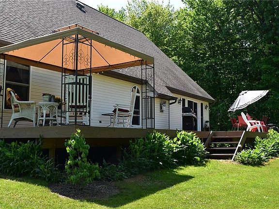 Beautifully Updated Cape Cod set on 6 park-like acres! This home offers great living space with 4 Bedrooms, 3.5 Baths & finished Basement. First floor includes Formal Living Room with hardwood floors, Great Room with vaulted ceiling & gas fireplace, large expanded Eat-in Kitchen with stainless steel appliances, breakfast bar, granite counters, recessed lighting & vaulted Dining Area with sliders to back deck. 1st floor Master Bedroom with updated private bath includes newer flooring & fixtures. Full Basement with finished Rec/Room, Office, Exercise Room, full Bath with Jacuzzi tub, storage area & access to garage. Central air. Newer gas furnace. 2-car attached garage plus expansive 40x32 detached garage for the collector or hobbiest, built in 2013 is heated and is deep enough to hold 4 additional cars. Storage shed. Set back off road with circular drive. Beautiful wooded setting with manicured beds and gardens. Chardon Schools.