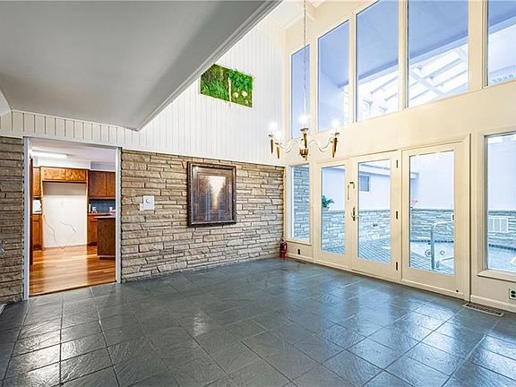 WOW! What a Fantastic Unique Home in the Heart of McCandless! Upstairs you will find four spacious bedrooms that have wood-planked cathedral ceilings, and two updated full baths. The main floor has a good-sized kitchen with tons of cabinets and counter space, a large island with breakfast seating area, a wet bar, and it opens to the family room that has hardwood floors, built-in bookcases, a beautiful stone gas fireplace, and access to the 3 car attached garage. The living room also has a gas fireplace and access to a gorgeous stone patio where you can relax listening to the waterfall pond! The dining room has cathedral ceilings, stone accent walls, opens to the hallway on the second floor, and a wall of windows that lead to the absolutely incredible atrium that you have to see to believe! This room is loaded with windows bringing in tons of natural light, a heated swimming pool that you can use year-round, ceramic tile floors, and additional access to the Patio!