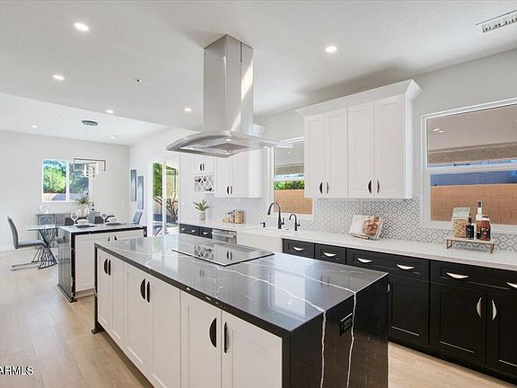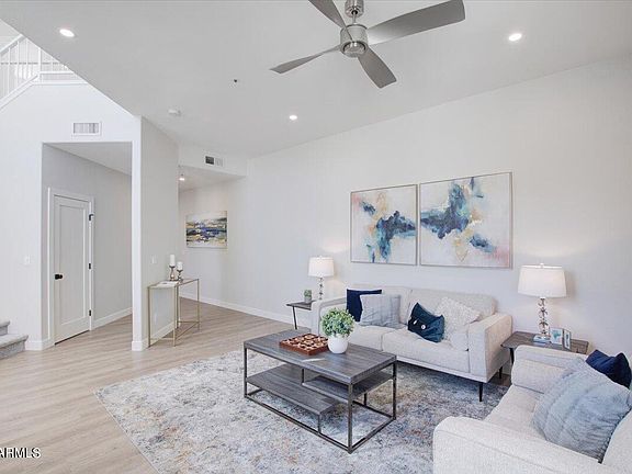 HIDDEN GEM. The minute you enter through the faux front door you know this is a special journey. Step into a totally private almost 7,000 SF courtyard/backyard ready to suit your outdoor lifestyle. Enter the residence and you immediately are taken away with the open plan, towering ceilings, and opulent luxury finishes. Double island kitchen with farmhouse sink, all new appliances, gorgeous cabinets, beautiful quartz countertops and luxury vinyl floors. R/O system plus a giant walk-in pantry. Downstairs guest suite. Upstairs primary suite with walk-in closet, full bath with marble counters and commanding mountain views. Two additional bedrooms upstairs. Outdoor spiral staircase leads to a stunning view deck. This home is a huge step-up from anything you've seen in this price bracket.