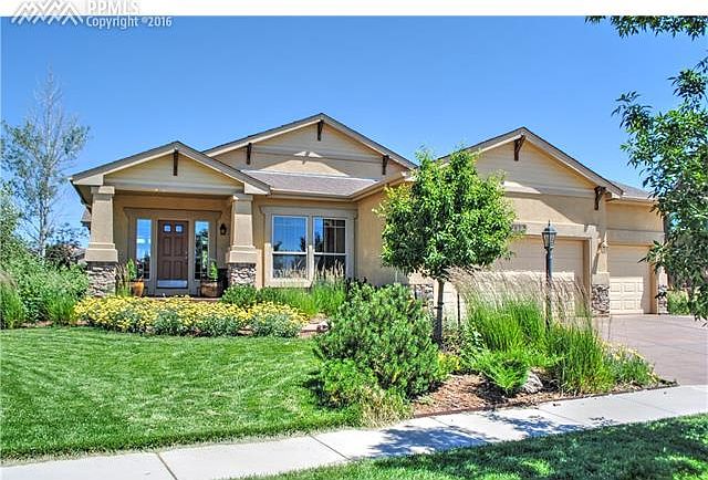 Former Vantage Range Model LOADED w/Upgrades & Designer touches. Full Stucco ext w/lush flowers, gardens and incredible stamped concrete patio w/built in seating & gas grill entertaining area. 16" tile floors greets you and take you thruout main level. Open concept w/huge Living & Dining areas plus granite eat in kitchen with SS appliances & gas stove. Luxury tiled 5pc bath w/glass block accents plus full finished bsmt w/game & rec rooms. Central A/C, custom window treatments. Backing to Park, Greenbelt & Pikes Peak Views.