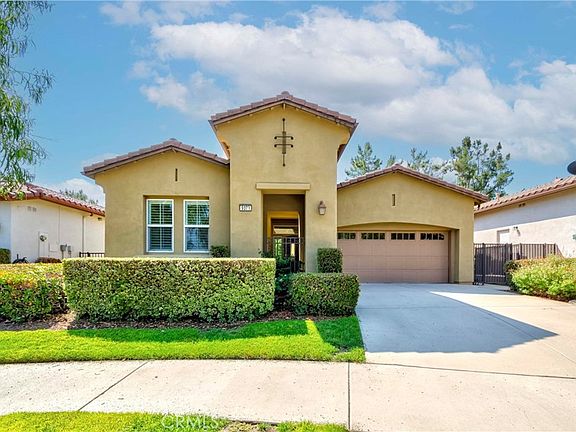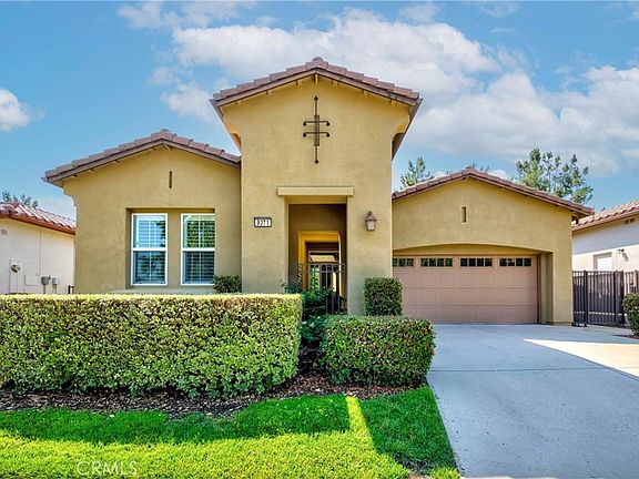 Welcome to this stunning, upgraded home located in the prestigious 55+ gated community of Trilogy at Glen Ivy, Southern California’s premier active adult neighborhood nestled at the base of the Cleveland National Forest. This beautifully maintained single-story residence offers an open and airy floor plan with high ceilings, upgraded laminate flooring, fresh paint, crown molding, and baseboards throughout. The heart of the home is a spacious great room that flows effortlessly into a gourmet kitchen, featuring corian countertops, an oversized center island with breakfast bar, extended cabinetry with decorator glass doors, and a charming breakfast nook that opens to a covered outdoor patio perfect for relaxing or entertaining.