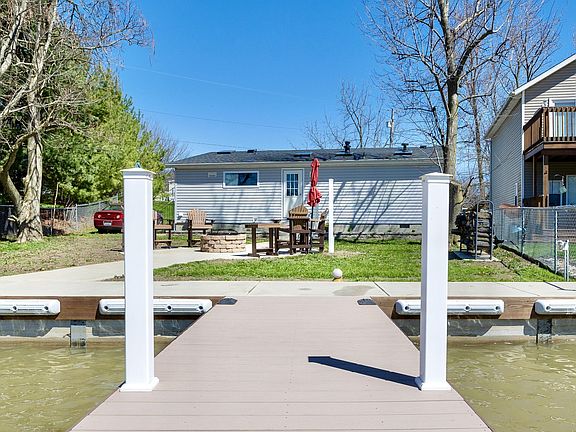Located on a cul-de-sac street, this Indian Lake waterfront with an open water view has been completely renovated inside and exterior updates include a new seawall, new Trex-like composite 20' x 5' pier dock, waterside concrete patio with firepit, concrete walkway to and along the seawall, new shed on a concrete pad and new side yard fencing. Parking is available in front and on the lot across the private street. The 3 bedroom, 2 full bath ranch home has been completely gutted and remodeled with new roof, all new waterproof LVP flooring, new woodwork & doors, baths, kitchen, light fixtures, Coleman HVAC, Rheem water heater and 4 new Velux skylights. Kitchen offers new cabinetry, countertops, hardware, SS sink, new microwave, under cabinet lighting and a large window with a panoramic view of the lake. Great room features vaulted ceiling, living and dining area with walkout to rear yard and waterfront patio area. Special features include W/D hookups, new 220 electric panel, owned water softener, new well (150' deep), ductwork, 2'' insulation board on foundation walls and sump pump with battery back-up. Bath updates include new tub/shower, toilets, vanities, flooring, lighting, & mirrors. Furnishings & patio set are included in the price. Absolutely must see to appreciate! Seller owns an interest in the lot across the street (Parcel #430051620021000) where extra parking is available and as well as a shed to store your water toys, mower, etc. See Broker Remarks for additional information.