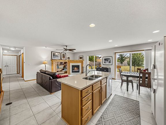 Open floorplan with plenty of large windows and natural light, spacious owners suite with bath and walk-in closet, hall bath also with quartz countertop, main floor laundry and central vac system, large kitchen with quartz countertops and maple cabinetry with plenty of storage space, cozy living room with custom built-ins and gas fireplace, dining area with sliders that open to a large new custom deck and a large flat usable fully fenced backyard; all perfect for entertaining family and friends.