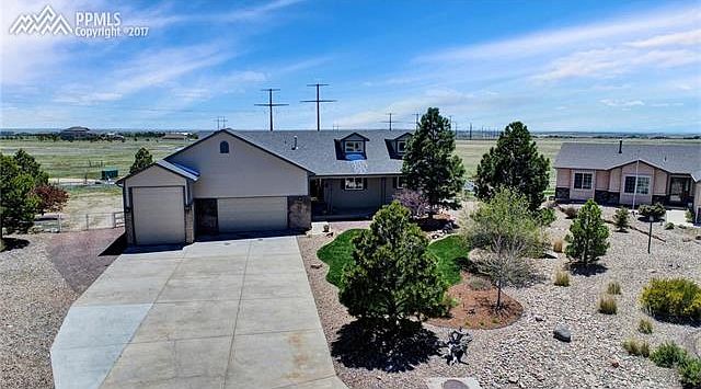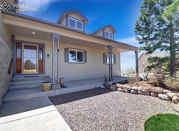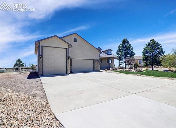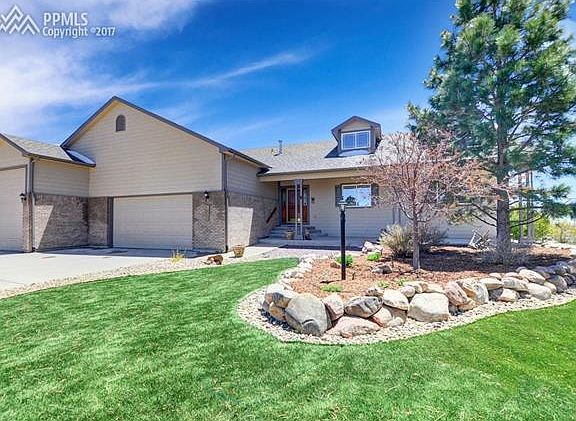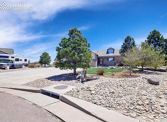 Sharp, extremely well maintained one owner ranch home situated on a beautiful half acre cul-de-sac lot with over 30 trees w/ drip system & a fenced back yard*Hardwood entry opens to the over sized great room, with large windows and a gas log FP*Laundry room w/ slop sink just off the Island kitchen with slab granite counters, tile flooring, upgraded black appliance package, raised paneled oak cabinets, pantry; adjoins the walkout dining room*Atrium doors opens to a large backyard w/ a 26x32 raised stamped concrete patio w/ Pike Peak Views*Private master bedroom has a piece bath and large walk-in closet*Convenient main level study with divided light french doors, a second bedroom, and a full hall bath complete the first floor*Full basement w/ 9 foot ceilings has a huge recreation room, large enough for billiards and ping pong, step behind wet bar plus a separate Theater room*2 generously sized bedrooms w/ walk-in closets, a full bath, and unfinished storage w/ shelving*Garage is 38' wide 23'deep w/ RV space being 38' deep w/ a 12' door, up to 4 cars or 2 + RV*There is designated secluded RV parking outside, and a 10x12 storage shed to keep your garage clutter free*Open flowing floor plan, large rooms, exceptional lot make this home a must see!