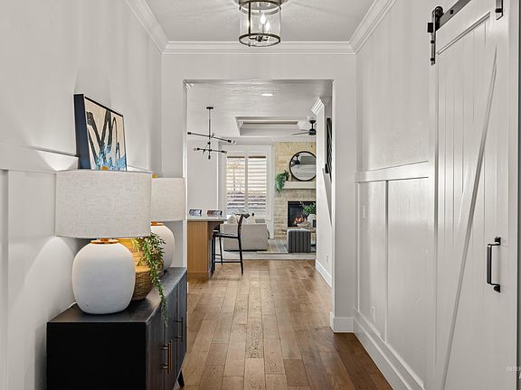 This exceptional custom Todd Campbell residence offers unparalleled luxury and privacy, with no backyard neighbors. Boasting 5 bedrooms and 3 bathrooms, the home features a main-level primary suite for ultimate convenience. Two distinct living areas downstairs provide flexibility, while an expansive bonus room upstairs could easily be a separate living space. The backyard, one of the largest in the subdivision, is an entertainer's dream, with three distinct areas perfect for gatherings. The gourmet kitchen is a culinary masterpiece, showcasing an oversized island, double stainless steel ovens, a built-in stove top, sleek quartz countertops, and a spacious butler's pantry ideal for hosting. High-end finishes are evident throughout, from intricate trim and molding to custom soft-close cabinetry with dovetail construction. Notable features include a barn door, premium lighting, central vacuum, water softener with reverse osmosis, and an oversized 3-car garage w EV Charger.