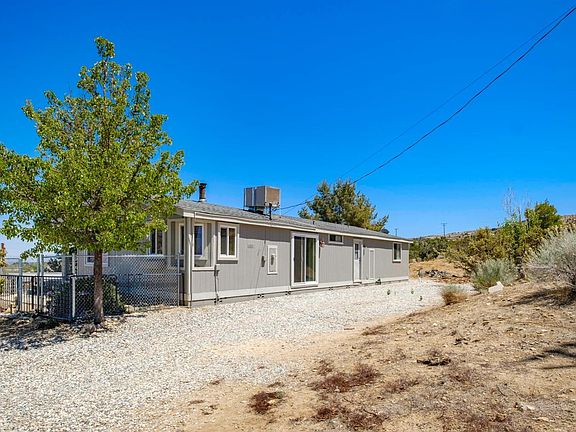 Manufactured Home on Permanent Foundation that sits on 2.17 Acres in Pinon Hills. Relax and take in the Beautiful Mountain & Valley views on your front deck. As you walk into this 3 bedroom, 2 bath, 1585 SF home you have a very nice floor plan featuring a living room with wood burning stove, dining area, office, large kitchen and laundry room. Kitchen offers a nice view out the corner windows above your sink, stainless steel appliances and plenty of cabinets and counter space. Ceiling fans thru-out. Master bedroom has walk-in closet. Master bathroom has double sinks, separate shower and oval soaking tub. Chain link fencing around the entry into the home and deck area. Exterior of home was just freshly painted. Roof is only about 7 years old. Evap Cooler keeps you cool and your electric bill low. Extra workshop area attached to back of house. Storage shed. Amazing property that you do not want to miss!