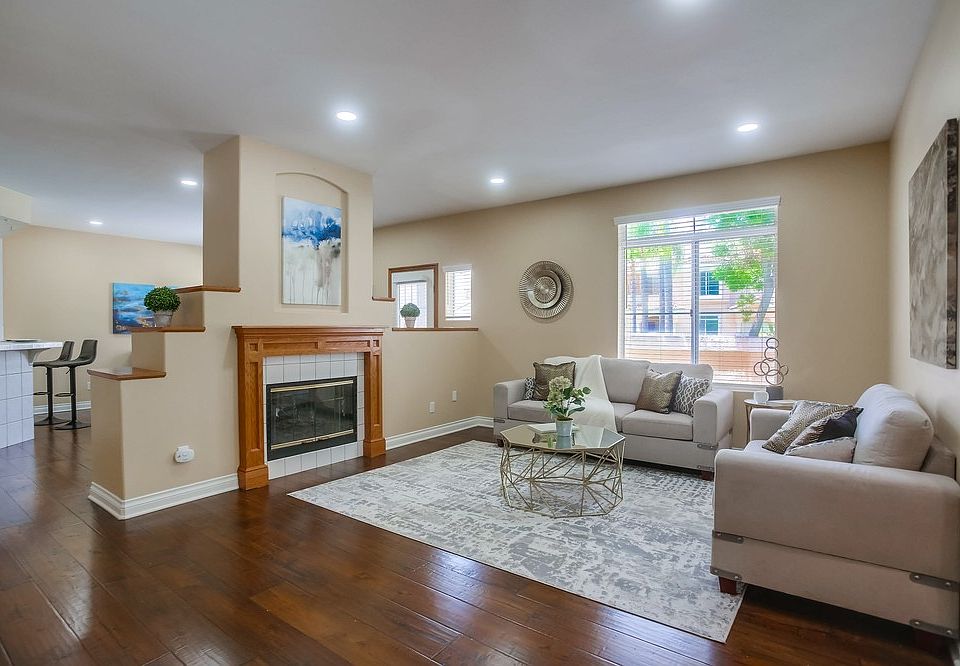 Welcome to your dream home in Rancho Penasquitos! This beautiful upgraded 3-bedroom, 2.5-bath townhouse with a 2 car attached garage offers a blend of elegance and comfort, perfect for modern living. Located on a desirable corner unit, the home is bathed in natural light thanks to numerous windows and a charming skylight. The freshly painted interior features stunning hardwood floors on the main level and plush newer carpets upstairs. The spacious family room boasts a dual-sided fireplace, creating a cozy ambiance that extends into the flexible dining or sitting area, complete with built-in bookcases and a wood mantel. Indoor laundry room with a full size washer and dryer.The large kitchen is a chef's delight, featuring ample cabinet and counter space, an eat-at bar, and stainless-steel appliances, including a refrigerator, stove, microwave, and dishwasher. Enjoy meals in the separate dining room or the adjacent flex space that opens to a private patio large enough for out door dining or just for lounging all overlooking a tropical pool area. The upstairs master suite is a true retreat with vaulted ceilings, a walk-in closet, and a luxurious ensuite bath with a separate tub, shower, and dual sinks. Additional highlights include a convenient laundry area with a washer and dryer, new recessed lighting in every room, secondary bedrooms with glass sliding closet doors, and central AC for year-round comfort. The attached 2-car garage provides ample storage and parking. The community includes lush landscape, pool, spa and lounging area. Don't miss this opportunity to make this light-filled, impeccably maintained townhouse your new home! Renter is responsible for Gas & Electric, Cable, internet. No smoking.