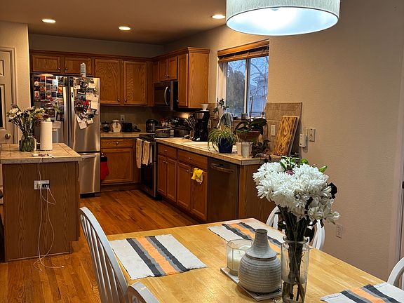 Wonderful opportunity to rent a townhome with a two car garage, fenced backyard, just moments from light rail! Enter this two story townhome into a spacious family room, adjacent to a kitchen featuring newer stainless appliances, hardwood floors, center island, and pantry. The main floor laundry features a laminate wood floor, and ample space for storing and working. Upstairs, you will find two bedrooms offset from the master, all featuring ceiling fans and built- ins in their respective closets. Two full baths round out the upper level. The two car garage offers shelving and a built in game table, while you can find some fresh air and socializing/barbequing space in the back yard on your maintenance free deck. 10 minutes from 3 interstates. Close to multiple parks, RTD N-Line rail stops, grocery stores, schools, restaurants and other amenities. 12 month lease, unless otherwise negotiated. Deposit due at signing. Renter is responsible for utilities and lawn care. No smoking indoors.