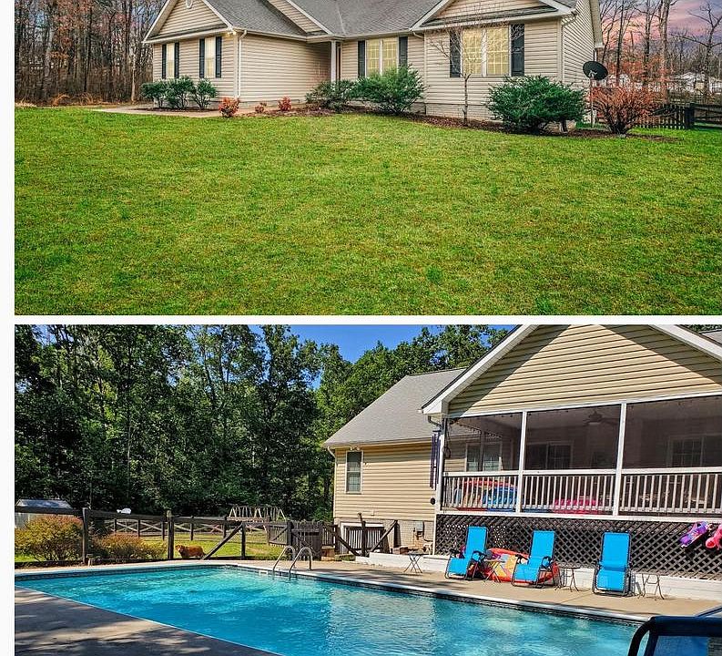 3.45ACRES**This home is a JEWEL with all the new improvements - Engineered hardwood in kitchen,living/,dining room, and hallways. NEW in hall bath, tile floor, new in master bath tile floor, toilet, vanity countertop. WHOLE HOUSE INTERIOR PAINTED , larger baseboard and all lighting replaced. BASEMENT drywall on walls and ceilings on approximately 900SF FINISHED LIVING SPACE with laminate flooring, built in closets, shelving in storage, bathroom, utility, new patio door, recessed lighting, tv mount in lower level and main level living spaces. RING DOORBELL, new water heater, H2O softener, whole house filtration system, outdoor AC unit, new coils on furnace, thermostat. "POOL" with a new salt system electric board, salt cell, replaced sand. BASEMENT STEPS REPLACED WITH HARDWOOD steps. New blower on septic system. New Kitchen island. Bought XFINITY CABLE to house. Added SHED/dog building, storage shelves in the garage. FIREPIT, painted concrete and outside of SCREENED PORCH, Generator!