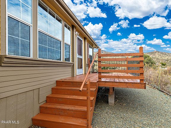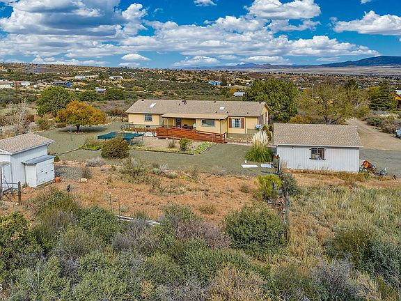 7.2+/-Acres of Amazing Panoramic Mountain & Valley Views, Beautiful & Peaceful Surroundings in the Foothills of the Incorporated Area of Dewey-Humboldt, Backs Up to BLM Land. Charming, Well Maintained Doublewide Home w/576 S.F., Detached 2 Car Garage, Fenced Permitter, Quality Private Well, Acreage for Horses & Farm Animals, Parcel can be Split, Paved Roads to Property, Landscaped Yards, Fruit Trees & Shed w/Water Cistern. Home has a Spacious Living Room, Wood-burning Stove, Vaulted Ceilings, Formal Dining Room, Kitchen w/Island, Major Appliances Included, Lg Master Suite, Master Bathroom w/Garden Tub & Walk-in Shower, Guest Bath & 2 Addt'l Bedrooms & or Office/Den, Laundry Room, Skylights, Water Softener, Rev Osmosis, New Carpet & Vinyl Flooring, Ceiling Fans, New Roof, RV Parking & More!