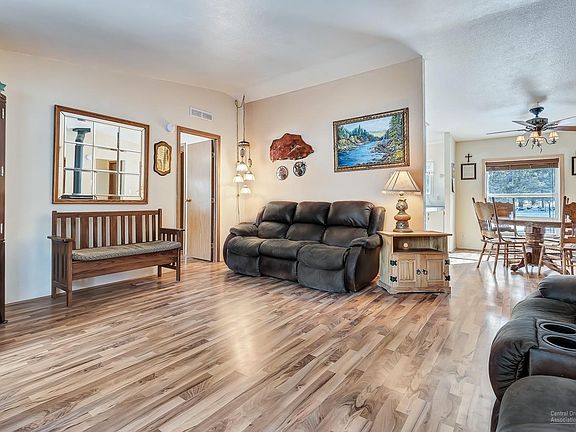 Horse lovers this is the property for you! Cute home sits back off road on a treed lot for privacy. 1.39 acres fenced & cross-fenced. Backs up to BLM with access to horse trails & hiking trails. 2 horse stalls include padded floors & electricity. Open floor plan w/vaulted ceiling. Big windows for natural lighting. Bedrooms on opposite ends of home. New wood stove 2016, new roof & gutters installed 2017. Detached over-sized, heated, 2 car garage includes 2 rooms w/heat & A/C, hot & cold water. Must see!