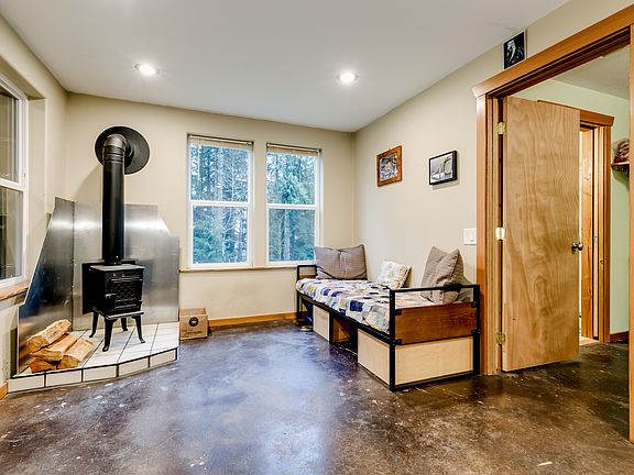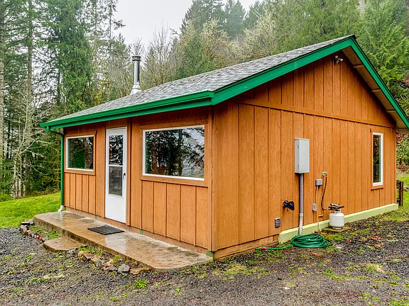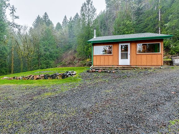 Extra Simple living at its best! Private newer built country cottage on 2.81 acres.Kitchen has ss appliances,Gas stove,& open style storage/shelving, wood stove,& Concrete floors throught. Indoor laundry/mudroom.Lots of space for all of your toys, gardening & animals.Enjoy the outdoors with hiking trails & fishing.Short distance to Triangle Lake.Multiple outbuildings such as treehouse & hobby/storage shop with covered carport.Home maybe able to be added on to.Buyer to do dilligence. no drivebys