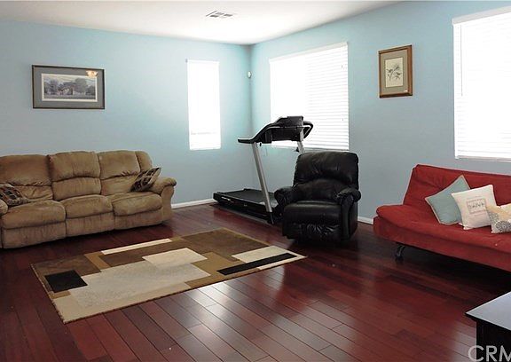 Welcome to Hesperia! This is a K Hovanian Two Story Home, formally one of the Model Homes. This can be a 4, 5 or 6 Bedroom Home! Right now it's being used as an 4 bedroom home. Open the front door and walk into a huge Living Room with wood floor. Walk into the big Kitchen with Corian Counters, extended cabinets and counter that's perfect for parties, an Island, extra storage, tile floors and comes with a Pantry. Family Room with Fireplace and a storage cabinet to put TV on it but it's being used as an addition to the kitchen with table and chairs for eating area. Down stairs bedroom is being used as a guest room and also has a full bathroom nearby. Master Bedroom with balcony and an jointing room used as master sweet/office which can me made to another bedroom. Master Bathroom with dual sinks, shower stall, bathtub, private toilet with door and a bright spacious walk-in closet with windows. Two bedrooms both with mirror closets, remodeled bathroom with two sinks, newer tube with tile. Separate laundry room upstairs and a play area near the stairs which can be converted to a bedroom. Solar Panels Too. Come and check it out.