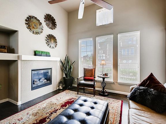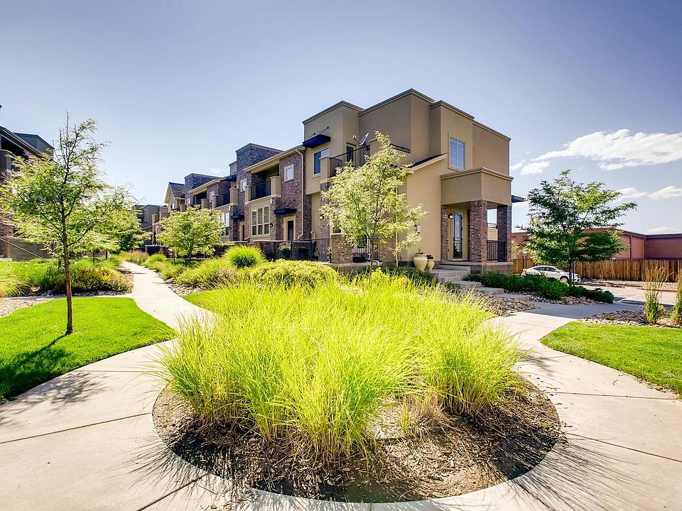 This upgraded end unit shows like a model and is ready for you to move in! Stunning upgrades include wide plank hardwood floors throughout the main floor and kitchen that boasts espresso cabinets and slab granite countertops, plus a pantry. Note details like the unique tile backsplash and pendant lights at the island. Stainless steel appliances include gas range, microwave, dishwasher and refrigerator. Access the covered deck, one of three outdoor spaces. Office area with wrought iron railing overlooks the great room with gas fireplace and access to the fenced in terrace. 3 bedrooms upstairs including master suite with 3/4 bath offering a large shower, dual sinks and slab granite countertops plus access to the private balcony. Secondary bedrooms utilize the full hall bath with slab granite and laundry upstairs. Oversized two car garage, whole house water conditioner, reverse osmosis at sink. Visitor parking right outside the unit! Great location adjacent to Highlands Ranch Town Center!