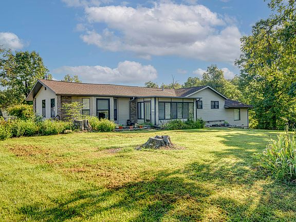 Quiet and secluded yet ONLY 15 minutes from Springfield, this home sits back in a private setting surrounded by nearly 30 ACRES of beautifully manicured park-like grounds. If you have dreamed of having a hobby farm where you can enjoy NO RESTRICTIONS, your own SPRING and the abundance of deer, turkey and other wildlife from your own porch, then this property is perfect for you! Home boasts over 2300 square feet, all on ONE LEVEL and features 4 bedrooms and 2 full baths, an eat-in kitchen with walk-in pantry, formal dining, office, mudroom, LARGE living room with bay window and wood burning fireplace, a 20x8 sunroom and a LARGE master suite with private deck access. Outside you will be impressed with the multitude of outbuildings, including a 30X60 red iron constructed shop with concrete floor and electric, along with an attached 30X40 machine shed, a 57X30 Quonset Barn w/concrete floor, electricity and water and an additional 56x20 workshop/outbuilding with attached carport/woodshed. Bring your animals and your toys, there is PLENTY of room for everything!! New well pump and tank in 2022, plus new septic and lateral lines in 2017.