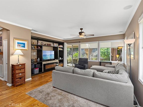 Welcome to this beautiful, turnkey, SINGLE LEVEL 2 bed, 2 bath home in Trilogy at Glen Ivy, a 55+ Active Adult Community. Enjoy the benefits of PAID-OFF SOLAR panels that result in little to no cost on your monthly electricity bill, and a Nest thermostat. The open kitchen features granite countertops, center island, stainless steel appliances, new microwave, recessed lighting and plenty of storage. Gorgeous hardwood floors flow through the living areas, complemented by carpeted bedrooms. The primary bedroom includes an en suite bathroom and walk-in closet. Outside, discover a landscaped backyard with a patio surrounded by fruit trees including lemon, lime, plum, apple and many more. The garage is finished with epoxy floors, plenty of storage, and windows that let in natural light. Community amenities include a clubhouse, gym, tennis courts, Pickle ball, bocce ball, indoor and outdoor pools, golf and more. Close to shopping, dining, and Glen Ivy Hot Springs—your perfect home awaits!