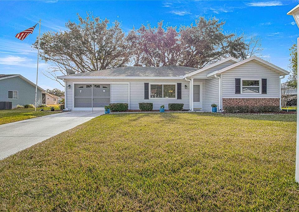 Looking for a move in ready, impeccably clean home? You just found it! Updated 2 Bedroom, 2 Bath "Juniper" Home with many new updates throughout. New luxury vinyl flooring installed in the living room and bedrooms in 2022. Freshly painted with neutral accent walls, vaulted ceilings (one of the few in this community) and an open floor plan with natural light makes this beautiful home feel spacious and welcoming. This home also features a split floor plan, large, enclosed Lanai, a freshly painted oversize one car garage (room for that golf cart) with washer and dryer, the kitchen has newer stainless appliances, brand new garbage disposal and sink, and lots of cabinet and counter space. The mature landscaping in front and backyard, provide great curb appeal and shade. This home is conveniently located in Spruce Creek South. This charming, well-maintained 55+ gated Golf Community is only minutes to Shopping, Medical and The Villages Downtown Spanish Springs. Spruce Creek South living offers a beautiful club house, community pool, gym with sauna, 150-acre nature park, hiking and biking trails and much more. Softball leagues and many other active groups to be involved in. Golf cart access to THE VILLAGES for shopping, restaurants, pharmacy, urgent care, physicians, banks and more!