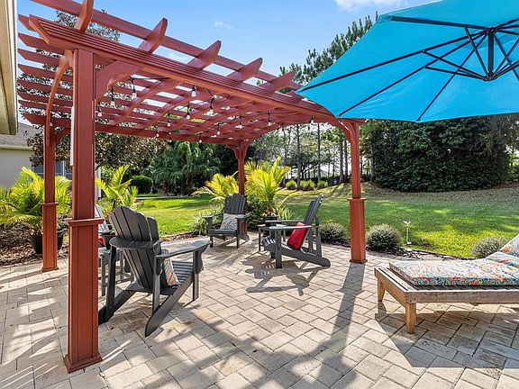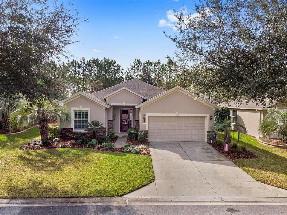 Sheridan Model 3/2/2 , fabulous curb appeal, stone accents on front of home, custom landscaping surrounds the home, privacy lot, and pergola with paver patio in rear to enjoy. Enter thru 8' front door with sidelight and storm door, tile/carpet, custom paint, ceiling fans, custom lighting and pendants, crown molding, shutters and blinds, and cabinets in laundry area. Kitchen has 42'' cherry cabinets, SS appliances, new faucet, and corian countertops. Lanai has glass windows, knee wall, ceiling fan and custom shades. Home has security system. This home is lovely, well maintained and ready for new homeowners to start enjoying their retirement years. Great price for the sq footage with all the upgrades and after market improvements. Come see what the power of your dollar with buy.