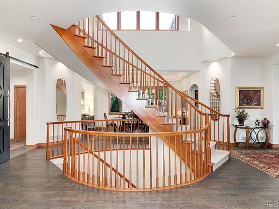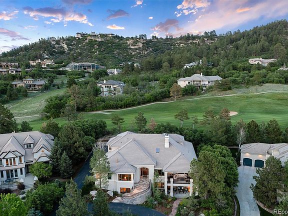 An Exceptional Opportunity in Coveted Castle Pines Village! Beautifully updated 2 story custom home features spectacular west mountain views and backs to the 7th Fairway. Situated on a quiet cul de sac this stunning home offers three covered patios to enjoy the views and wildlife. Rare 2 story floor plan offers a main floor primary suite, 3 ensuite beds/baths on upper level, cozy bonus room with fireplace, and walkout basement. The newly remodeled main floor primary suite features a sitting area, fireplace, gorgeous brand new 5 piece bath, heated floors, steam shower, soaking tub, and huge updated walk-in closet. Many recent designer updates on the main level include a redesigned Great Room with new fireplace surround. Hardwood floors were extended into the Great Room, Office/Den and Primary Bedroom and original floors refinished. The Chef's kitchen opens to the informal dining area and Great Room with access to both the front and back patios, perfect for entertaining. Beautiful new landscaping and water feature enhance the private outdoor spaces. The expansive walkout basement features a rec room, covered patio with views, updated full kitchen and fireplace surround, two additional bedrooms with ensuite baths, and a bonus room perfect for a fitness room. This spectacular home has too many updates to list! The home was built by Summit Chalet, one of the most revered builders in Castle Pines Village with exceptional craftsmanship and attention to detail. The Village encompasses two top rated private golf courses and features 3 swimming pool facilities, a fitness facility, pickleball, and tennis courts, playgrounds, and 13 miles of walking & biking trails. The Country Club at Castle Pines was recently renovated and offers Golf and Social Memberships.