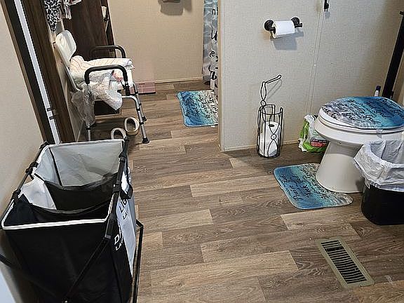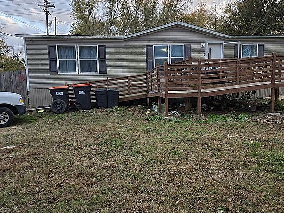 4 bedroom mobile home that was converted to a 3 bedroom. Opened wall in the two bedrooms to make one large one. Open floor plan. Master bedroom has own bathroom with large tub. Also has enormous walk in closet. On 1/2 acre of land with a privacy fence in back. On corner lot.