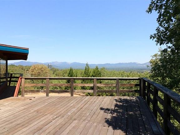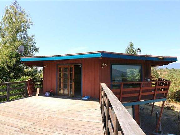 Unique hilltop home situated on 10 private acres with views in every direction! Enjoy the peaceful setting from the large wrap around deck. The home is octagonal in shape with high ceilings, knotty pine walls and wood beamed ceilings. To highlight the gorgeous mountain and valley views, the main living spaces are located on the second floor and include great room, kitchen, dining area, master bedroom with large picture windows and a full bath with walk-in shower. The lower level features a family room that could also be used as a den or recreation room plus a second bedroom, full bath and laundry room. Outside there is a brick patio area and a 2 car carport. Property is heavily wooded with a variety of trees including redwood, cedar, pine and alders. But there is still plenty of room and sun for gardening. Home is need of some repairs and is being Sold As-Is by Conservator, sale subject to approval by Court. Call for more info.