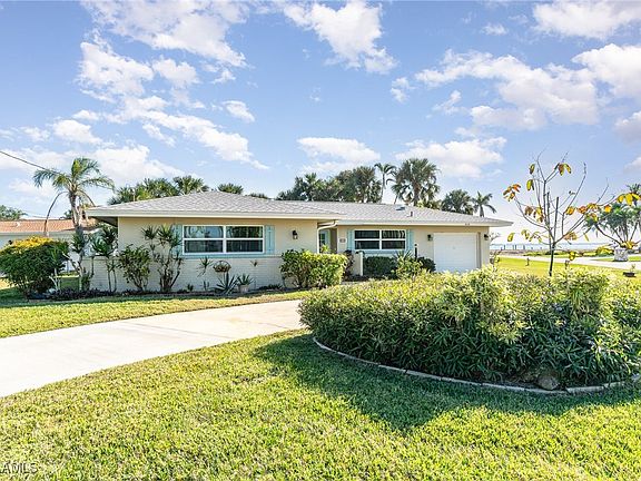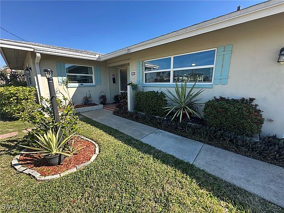 LOCATION, LOCATION, LOCATION!!! Discover your dream coastal retreat! This exceptional 2-bedroom, 2-bathroom, den split floor plan single-family home is located in the highly sought-after Yacht Club area of Cape Coral, surrounded by million dollar homes. Set on an oversized corner lot, this property is just a 5-minute flip-flop stroll to the beach. Blending coastal charm with modern updates, it’s the perfect choice for a full-time residence or a vacation getaway. The bright, open layout features elegant wood tile flooring throughout. The spacious primary bedroom with an en-suite bathroom features a walk-in-shower and is thoughtfully designed for use as an income-producing vacation rental or private guest quarters including a mini-fridge and microwave (currently a successful Airbnb). The second bedroom and den are privately situated just off the open and light-filled great room, offering a peaceful retreat within the home. The kitchen is a chef's delight, featuring stainless steel appliances, quartz countertops, white shaker cabinetry and generous storage. Step outside to your private patio, where lush tropical landscaping creates the perfect setting for morning coffee or evening cocktails. Additional highlights include a 1-car garage, hurricane impact windows, a new roof (2022), and updated plumbing (2021), including all-new sewer lines for added peace of mind. Located in a vibrant boating neighborhood, you’ll enjoy sandy toes and ocean breezes any time you please. Whether you’re looking for adventure or pure relaxation, this location offers the best of both worlds.