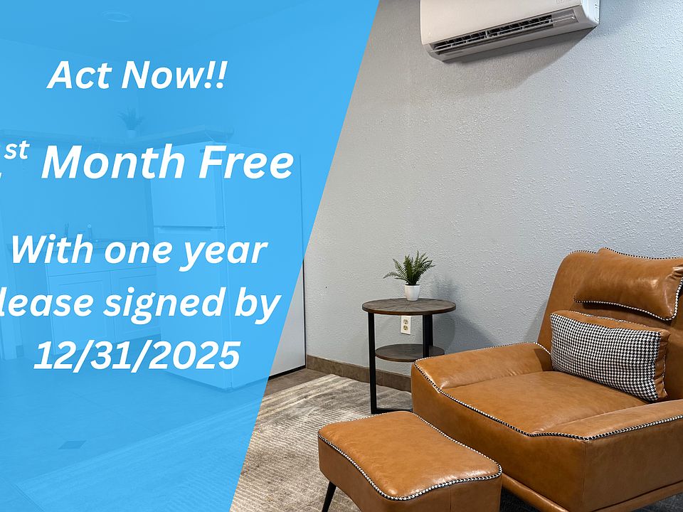 - Special offer! Get your first month free with a 1 year lease signed by 12/31/2025!Expires December 31, 2025