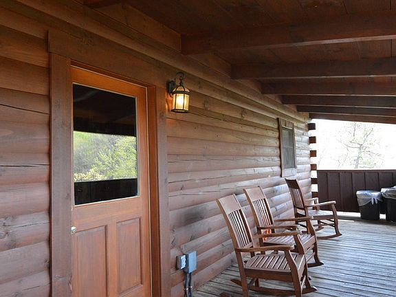 Large log home with a awesome mountain view. Plenty of covered decking with a hot-tub to enjoy the mountain views. Gas log stone fireplace in large living room with wood flooring. Upstairs and a large private bedroom and bath with a whirlpool tub. Much more.