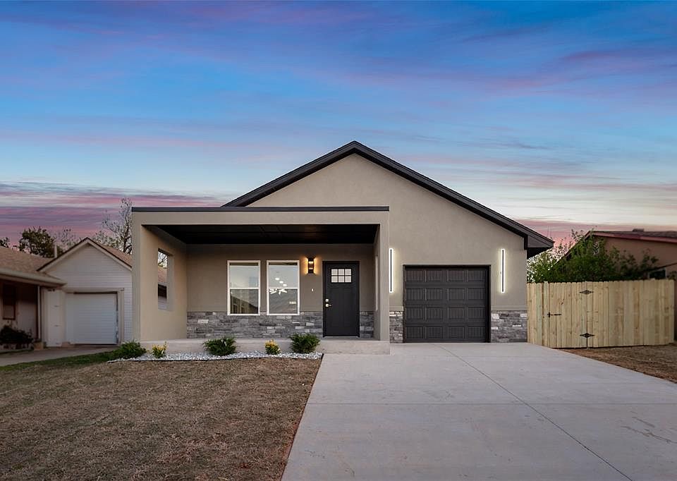 Welcome to contemporary luxury living in Oklahoma City! This brand new, impeccably built home offers you a well thought, open floor plan and over 1500 square feet of elegant living space. Step inside to discover the epitome of modern design, with marble tile flooring throughout and a sleek electric fireplace adding warmth and style to the living area. Entertain guests on the expansive front porch or retreat to the large covered back patio, overlooking the generously sized fenced yard. Every inch of this home exudes luxury, from the stunning granite and quartz countertops to the custom-built cabinets and modern hardware. The chef's kitchen is a dream with stainless steel appliances, including a gas stove complete with a convenient pot filler. Indulge in the lavish hall bath featuring custom cabinetry, a stone sink, and a beautifully tiled shower tub area. The primary bedroom is a serene sanctuary the features a custom accent wall and lighting, as well as a luxurious ensuite bath with a freestanding soaking tub, double vanity, and a large walk-in closet with built-in shelving. No detail has been overlooked in this meticulously crafted home, offering the perfect blend of sophistication and style. Schedule your tour today and experience the pinnacle of contemporary living!