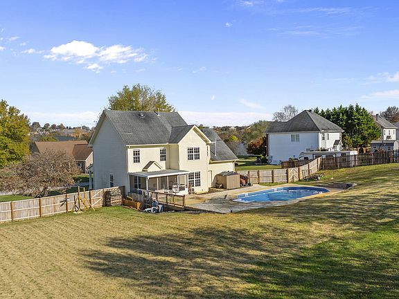 The home has three sizeable bedrooms. There is a large bonus room above the oversized three car garage, which then opens to the beautiful back yard where you can relax and enjoy the amazing views of the Smoky Mountains. The stunning saltwater pool is enclosed with flagstones and decking. The home is conveniently centrally located, close to shopping, restaurants, the University of Tennessee, downtown Knoxville, Maryville, McGhee Tyson Airport, Pigeon Forge, Gatlinburg, and the Great Smoky Mountain National Park. Here you can fully capture the gorgeous changing colors of the four seasons. Schedule to see your future home today! Buyer to confirm square footage. Hot tub and washer/dryer are included with acceptable offer.