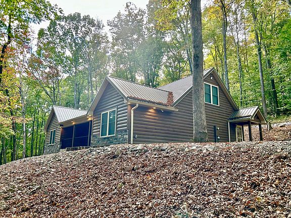 Stunning custom-built cabin in the heart of a beautiful lake community! Fully furnished w/ All New Furniture and Furnishings 3BR, 2BA home is like brand new, built in 2021 making it the perfect full time, second home or Airbnb rental. Step inside and be greeted by the open floor plan and impressive wooded ceilings with custom beams and stone fireplace creating a warm and inviting atmosphere. The custom kitchen is a chef's dream, featuring soft-close cabinetry, granite counters, and all new cookware. Lots of storage space with the huge walk-in pantry, and the spacious laundry room comes complete with a wash sink.The main bedroom is a true retreat, boasting a large en-suite bathroom with dual sinks and a tiled shower. Gorgeous mountain views right from your bedroom window. Step outside and enjoy your coffee on the screened porch or from the firepit.