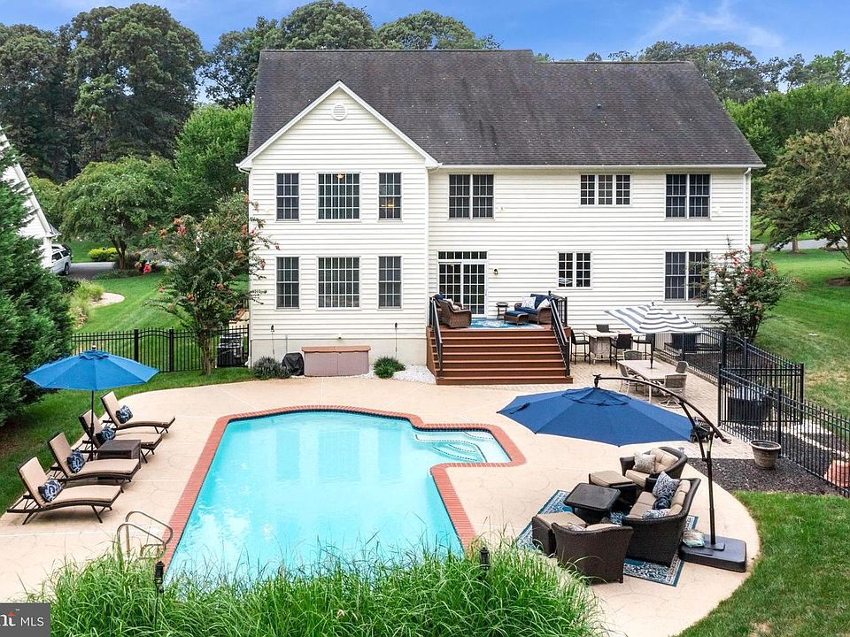 OUTSTANDING ORIGINAL OWNER CONVERSE MANOR HOME located in highly valued Broadneck School District! Resort-style living on heavenly acre minutes from metro & WATER PRIVILEGED SHORE ACRES amenities! Fenced inground pool with cascading waterfalls and professionally hardscaped patio and paver walkways. Professional landscaping, perennial gardens, and exterior lighting. Enjoy conversation in your outdoor deck Living Room and host starlight meals on the poolside patio! The main level of the home showcases light-drenched spaces including a private office overlooking the ever-changing seasons with abundant wildlife visitors. The gourmet kitchen boasts a gas cooktop island, granite counters, ample cherry cabinetry, wall ovens, and separate dining area. The spacious Primary Bedroom Suite haven offers custom walk-in closets which flow into an ensuite luxury bath with spa tub & separate shower. Spread out into 4 additional bedrooms accompanied by a family bath and separate laundry room. The unfinished basement would be perfect for future game room, rec room, home office, or fitness room! If you seek a newer home in a private, wonderfully established community, WELCOME HOME!